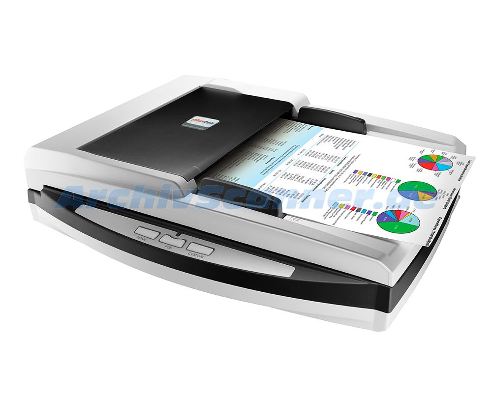Plustek SmartOffice PL4080 - Schneller vielseitiger Dokumentenscanner fürs Büro Der Plustek SmartOffice PL4080 Duplex Scanner vereint die Vorteile von Einzugsscanner und Flachbettscanner in einem Gerät und bietet eine Fülle an Funktionen zum Digitalisieren, Archivieren und Verwalten von Dokumenten. Dank umfangreicher Scanfunktionen liefert der Plustek SmartOffice PL4080 Scans von ausgezeichneter Bildqualität und ist mit seinem 50 Blatt Vorlageneinzug und integrierten DIN A4 Flachbett für vielfältigste Scanaufgaben gewappnet. Automatische ADF / Flachbett Erkennung Der Plustek SmartOffice PL4080 ist ein Kombinationsscanner mit ADF und Flachbett und kann mit seinem Vorlageneinzug für bis zu 50 Blatt ein breites Spektrum an unterschiedlich großen und dicken Dokumenten bei einer Scangeschwindigkeit von bis zu 40 Seiten bzw. 80 Bildern pro Minute erfassen. Über das Flachbett lassen sich für den ADF ungeeignete Dokumente, z.B. geprägte Karten, kleine , gebundene oder empfindliche Vorlagen, bequem und auf schonende Weise digitalisieren. Der Plustek PL4080 Scanner ist für ein tägliches Scanvolumen von 3.000 Seiten ausgelegt. Scannen auf Knopfdruck Der Plustek SmartOffice PL4080 verfügt über die intelligenten Funktionstasten Scan, PDF und Custom. Die Custom-Taste kann individuell mit einer von 7 Scan-Funktionen belegt werden. (z.B. Scan to PDF, Scan to File, Scan to E-Mail oder OCR Texterkennung). Außerdem lassen sich Scanprofile für häufig benötigte Scanaufgaben mit jeweiligen Scaneinstellungen vordefinieren. Dadurch wird nicht nur die Bedienung erleichtert, sondern auch die Produktivität gesteigert. Kompatibel mit den meisten Bildverarbeitungsprogrammen Die mitgelieferten TWAIN-Treiber stellen eine Kompatibilität zu tausenden von Scan- und Bildverarbeitungsprogrammen her. Dokumente können schnell und einfach als TIFF, JPEG, PDF oder in einem Microsoft Office Dateiformat ausgegeben werden. Die ebenfalls mitgelieferte ABBYY FineReader Software ermöglicht sogar die Erstellung und Verwaltung durchsuchbarer PDF Dateien. Die integrierte Bildverarbeitung des Plustek SmartOffice PL4080 liefert nicht nur exzellente Bildqualität, sondern verringert auch die Zahl fehlerhafter Scans und erhöht zugleich die OCR Genauigkeit. ABBYY FineReader Sprint FineReader ist eine Schrifterkennungssoftware, die Schriften innerhalb von Papierdokumenten, Bildern und PDF-Dateien mit großer Genauigkeit erkennt und damit den Bedarf an manuellen Text- und Formatkorrekturen verringert. Ein Werkzeug für produktives und effektives Arbeit mit intuitiver Benutzeroberfläche und OCR-Schriftenerkennung für bis zu 183 Sprachen. Plustek DocAction Über die Plustek DocAction Software können die Scantasten des Plustek SmartOffice PL4080 am PC programmiert werden, um später auf Tastendruck den Scanvorgang mit den gewünschten Einstellungen zu starten. In den Scaneinstellungen können u.a. Speicherort und Dateiformat festgelegt werden. DocAction kann digitalisierte Dokumente in gängigen Bildformaten wie JPEG, TIFF oder PDF ablegen. Je nach Bedarf lässt sich die erzeugte Datei an einen benutzerdefinierten Speicherort, ein Netzwerklaufwerk, einen Drucker, einen FTP-Server oder gar per E-Mail versenden.