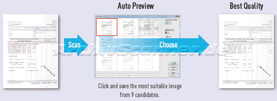 Der KVS-S5055C Scanner ist unter anderen mit den Softwarefunktionen AutoRescan und AutoPreview ausgestattet. Diese Funktionen ermöglichen es dem Benutzer ganz einfach per Mausklick das beste Bild, aus 9 Beispielen, auszuwählen ohne den Scanvorgang wiederholen zu müssen. Weitere Bildoptimierungsfunktion sind