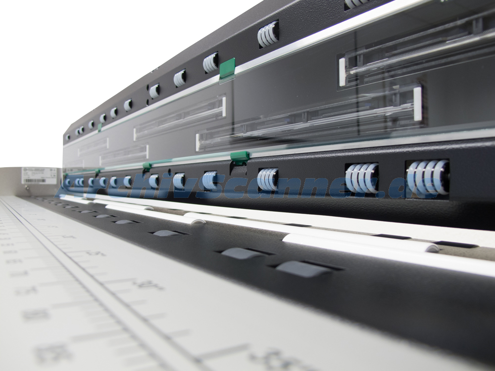 ROWE Safe Drive transportiert auch fragile Originale sicher und reduziert deutlich die Verschmutzungen und den Verschleiß des Scanglases. Der aktive Auslauf - Angetriebene Transportwalzen hinten - gewährleisten einen sicheren Auslauf des Originals. Kein Rückstau im Scanner.